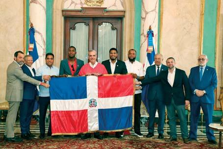 0 El presidente Luis Abinader, entrega la Bandera Nacional a jugadores y ejecutivos del Escogido.