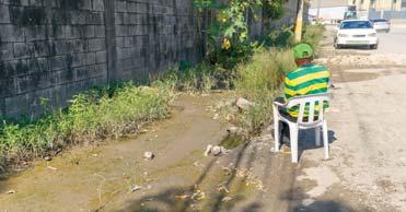 SANTO DOMINGO OESTE. Hace muchos años que la acera sur de la calle Guarocuya, entre la Juan Ballenilla y la Luperón, no es apta para caminar por su mal estado. Ese tramo está lleno de lodo y maleza y, cuando llueve, de agua. Esto debido a que el sistema de drenaje pluvial no funciona. Aunque no es una zona habitual de peatones, los que caminan por el lugar deben bajar a la ca lle y exponerse a ser atropellados por uno de los tantos camiones que transitan por la vía. En el área dijeron que el alcalde Francisco Peña conoce la situación. b