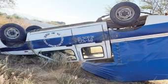 Oaxaca, Oax.- Una camioneta del servicio mixto de pasaje procedente de Santa Ana Zegache, volcó sobre la carretera federal 175, en el Valle Central de Oaxaca.