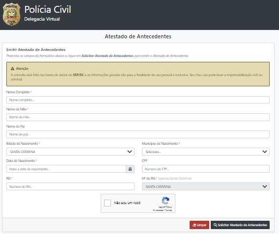 A partir de agora, o cidadão só precisa inserir os seus dados pessoais no formulário online disponibilizado pela Delegacia de Polícia Virtual para solicitar a emissão do atestado. Lembrando que o documento só é emitido mediante conferência de alguns critérios de pesquisa no
