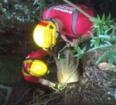 Umavacafoiresgatada pelo Corpo de Bombeiros Voluntários de Jaguaruna após cair em um buraco de cinco metros deprofundidade.