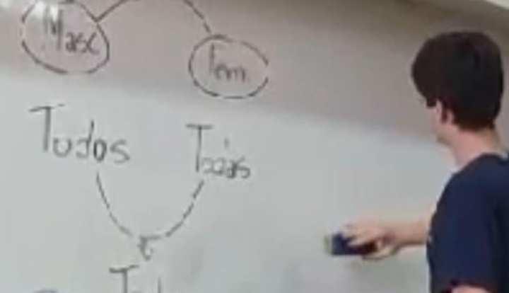 “Se você fosse uma pessoa não binária, uma pessoa que é homossexual, e se sentisse ofendida com o ‘todos’, porque o ‘todos’ não abrange o seu tipo de gênero”, disse a professora. “Então você teria que engolir o ‘todos’. Agente tem que entender pela ótica de uma pessoa quenãoéheterossexual.”