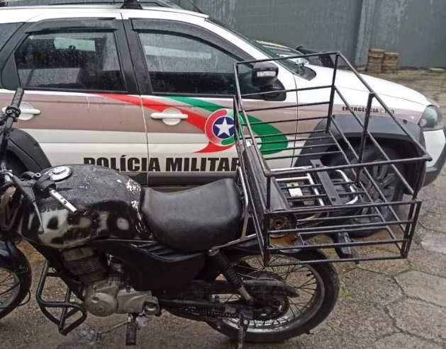 Uma motocicleta de entrega de gás roubada semana passada no bairro PousoAlto, em Gravatal, por dois homens com uma arma de fogo e uma machadinha, foi recuperada nesta terça-feira (26). O veículo foi encontrado no bairro São Martinho, em Tubarão, desmontado e parcialmente pintado de outra cor.