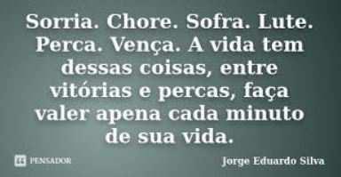 Mas, cruzar a linha de chegada, depende somente de nós. Se nos acomodarmos, o desânimo de apoderará de nós e sucumbiremos. Todavia se, com coragem e determinação, seguirmos em frente, a vitória é certa.