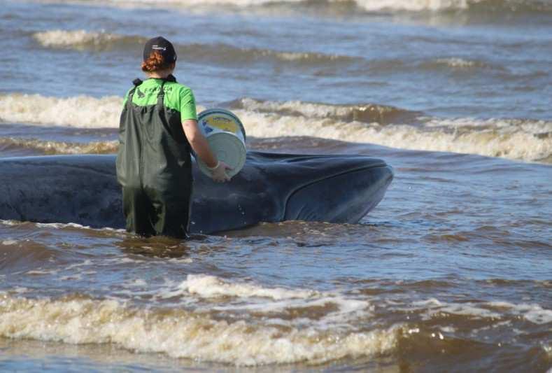 Encalhes da APA da Baleia-Franca tentaram resgatar o animal, que morreu posteriormente. Já em Imbituba, o caso foi registrado nessa segunda-feira, dia 24. O animal, que era um filhote de baleia-franca-austral, conseguiu sobreviver após os esforços de resgate e também da alta maré na localidade.