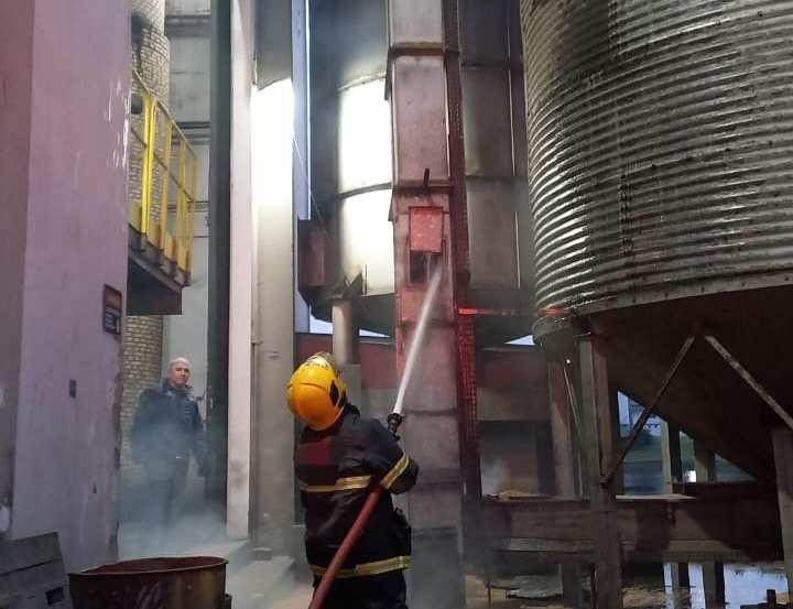 a guarnição constatou que a situação se tratava de um princípio de incêndio em uma das torres do elevador que transporta cascas de arroz de um silo para outro, ou seja, um incêndio confinado de pequeno porte. Por precaução, os profissionais acionaram a