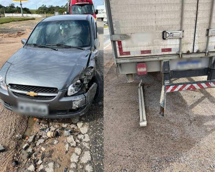 O carro colidiu na traseira do caminhão. Após atendimento, os motoristas não apresentaram ferimentos aparentes e assinaram recusa de condução ao hospital.