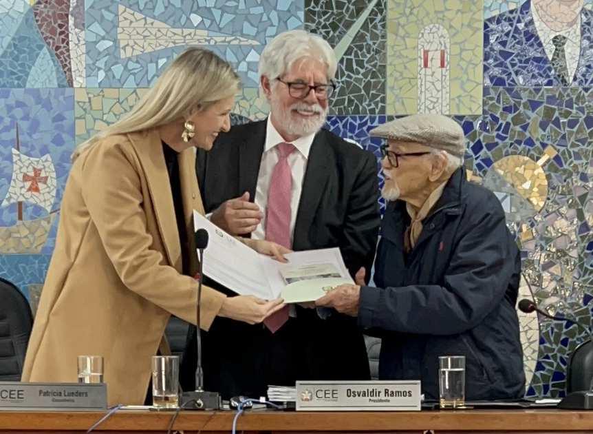 Além do lançamento da obra, a plenária também contou com uma homenagem in memoriam ao professor e gestor escolar Holando Marcellino Gonçalves, que construiu e dirigiu a escola estadual que leva seu nome em Jaraguá do Sul. Familiares do professor, a atual gestão da unidade escolar e o coordenador regional de educação de Jaraguá do Sul, Leopoldo Diehl Filho, participaram da sessão.