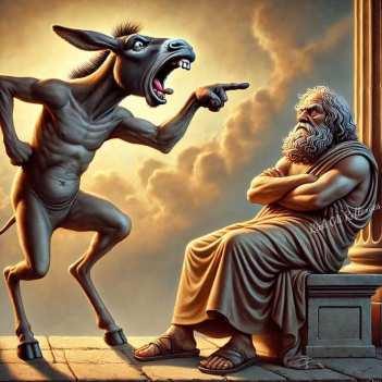 Mas como reage Sócrates? Ele não fez nada! Não gritou, reagiu violentamente, nada. Um dos seus alunos lhe fez uma pergunta sobre o comportamento de Sócrates, e o grande filósofo respondeu: "Se um burro me chutasse, eu o processaria? ""