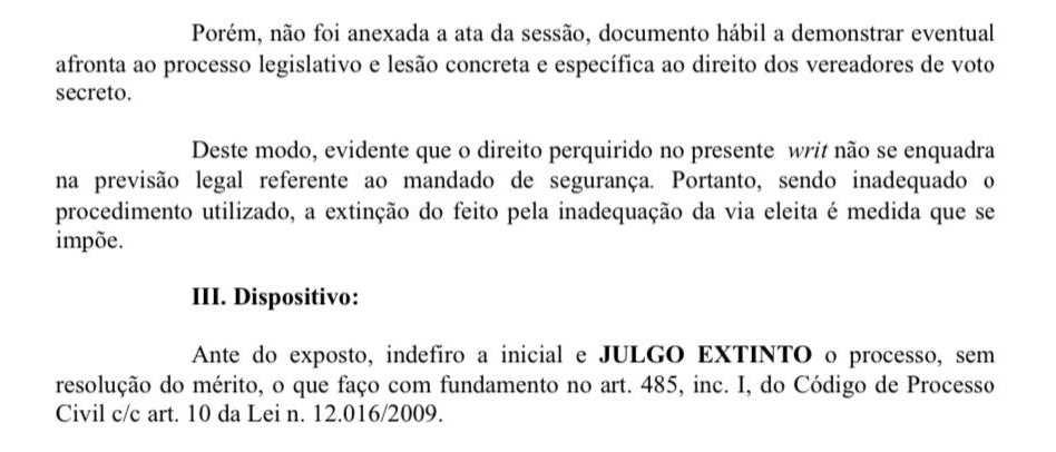 Em sentença proferida no dia 24 de abril de 2025, a juíza da 2ª Vara da Comarca de Jaguaruna negou o pedido liminar e julgou extinto o processo, mantendo a validade dos trâmites legislativos e dos projetos em questão.