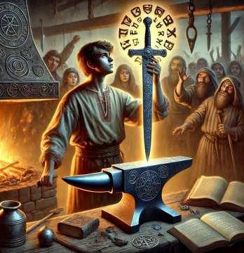 Em um reino distante, vivia um jovem ferreiro chamado Elias. Ele trabalhava na forja de seu avô, um mestre na arte da metalurgia. Certo dia, enquanto polia uma antiga espada herdada de sua família, Elias notou estranhos símbolos gravados na lâmina. Intrigado, levou a espada a um sábio da vila.