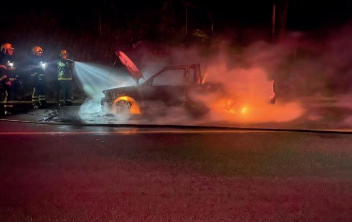 Um veículo VW Saveiro foi destruído por um incêndio na noite desta quarta-feira, dia 5, em Treze de Maio. A ocorrência foi registrada na Rodovia Muni-