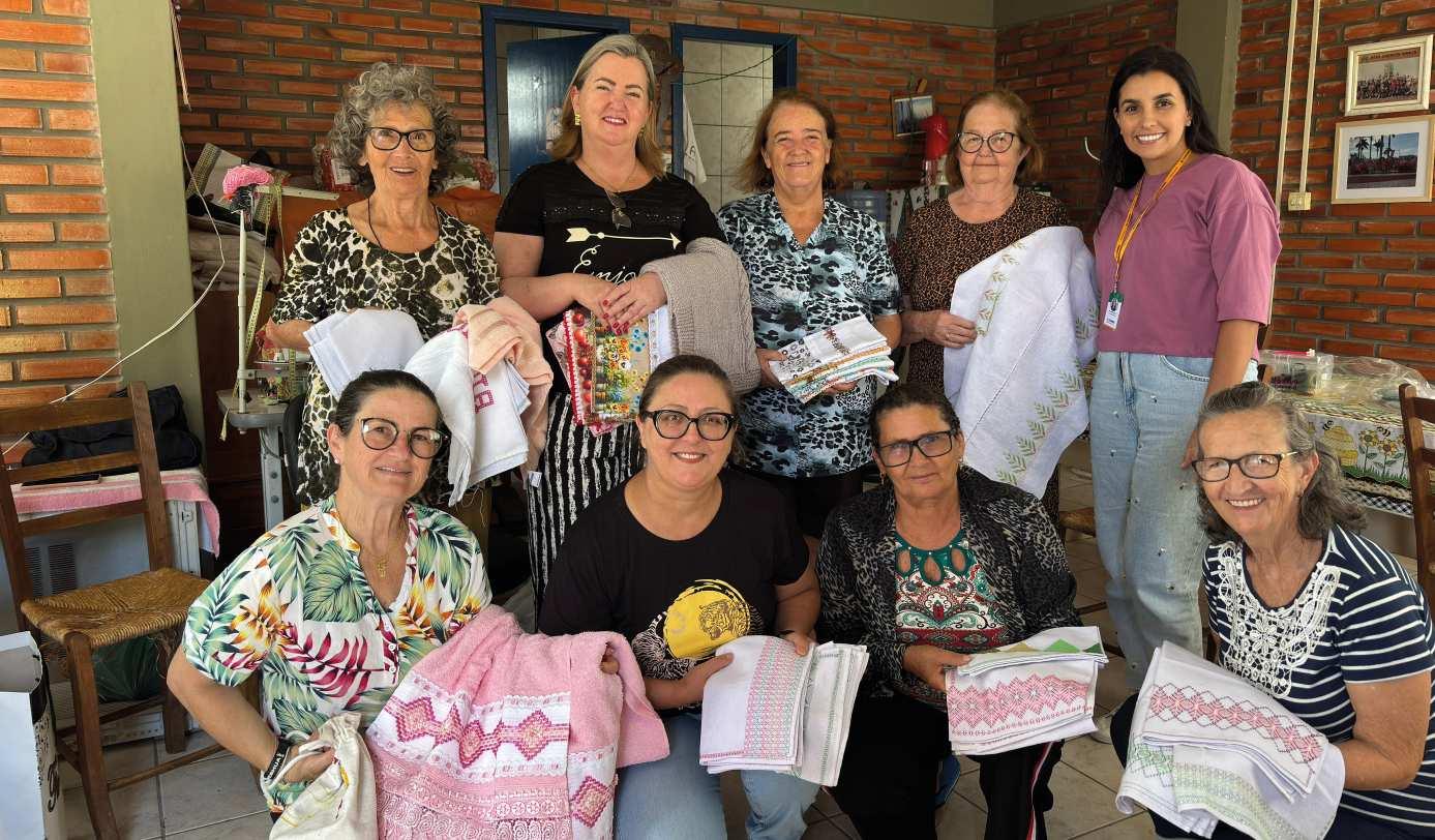Aos 85 anos, dona Maria Cancelier Rodrigues ainda frequenta o grupo e diz que se sente bem em poder aprender e compartilhar seus conhecimentos com as novas amigas. “Aprendi muita coisa nova e o artesanato nos ajuda a ra-