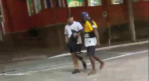 O solicitante relatou que ele e um amigo praticavam atividade física quando passaram a ser perseguidos por um indivíduo em surto.