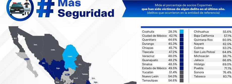 Coparmex Hidalgo ocupa el cuarto lugar a nivel nacional con socios víctimas de delito