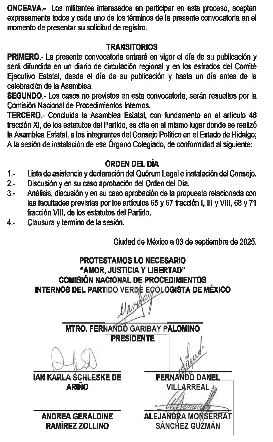 • Oscar Raúl Pérez Cabrera JEFE DE INFORMACIÓN • Ángel Martín Trigueros González COORDINADOR DE EDICIÓN • Luis Antonio Monroy COORDINADOR DE DEPORTES • Ana Luisa Vega Hernández COORDINADORA DE MUNICIPIOS • Rubén Mendoza Bermúdez COORDINADOR DE BARANDILLA • Tania Peralta Zamora COORDINADORA DE SHOW Y CULTURA • Vianey Tolentino Sánchez COORDINADORA DE DISEÑO • Néstor Ramírez Castro JEFE DE PRODUCCIÓN • PLAZA JUÁREZ. “La Historia de Cada Día”, publicación diaria 03 de septiembre de 2025 Año 20 • Número 7276 • Editor Responsable Sr. Martín Peralta Sánchez • Número de Certificado de Reserva otorgado por el Instituto Nacional de Derecho de Autor 04-2021-110417520700-101 • Número de Certificado de Licitud de Contenido Número 11644 • Número de Certificado de Licitud de Título Número 14071. Otorgado por la comisión Calificadora de Publicaciones y Revistas Ilustradas de la Secretaría de Gobernación • Publicado y Distribuido por Comunicación Colectiva de Hidalgo S.A. de CV. *Domicilio de la Publicación: Calle Diamante 400 Fraccionamiento Colosio I. Pachuca, Hidalgo CP 42088 Teléfono 71 702 80 • Impreso por Comunicación colectiva de Hidalgo S.A. de C.V., calle Diamante 400 Fraccionamiento Colosio I. Pachuca, Hidalgo 42088* Precio $5.00 • Circulación Certificada por Brumat Media, S.A. de C.V. (Institución Certificadora BRUMAT MEDIA). Registrado en el Padrón Nacional de Medios Impresos de la Comisión Calificadora de Publicaciones y Revistas Ilustradas (CCPRI) de la Secretaría de Gobernación, con Número de Expediente: CCPRI/3/TC/08/17961. • Servicios informativos y de fotografía; Agencia EL UNIVERSAL, Agencia Española de Noticias EFE. Dirección de Internet: www.plazajuarez.mx • Prohibida su reproducción parcial o total.