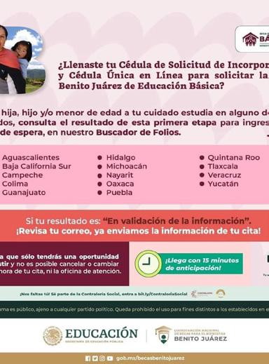 La Delegación de Programas para el Bienestar Hidalgo, publicó a través de sus redes sociales, la segunda etapa para continuar con el trámite para ser beneficiarios de la Beca Benito Juárez, para educación básica.
