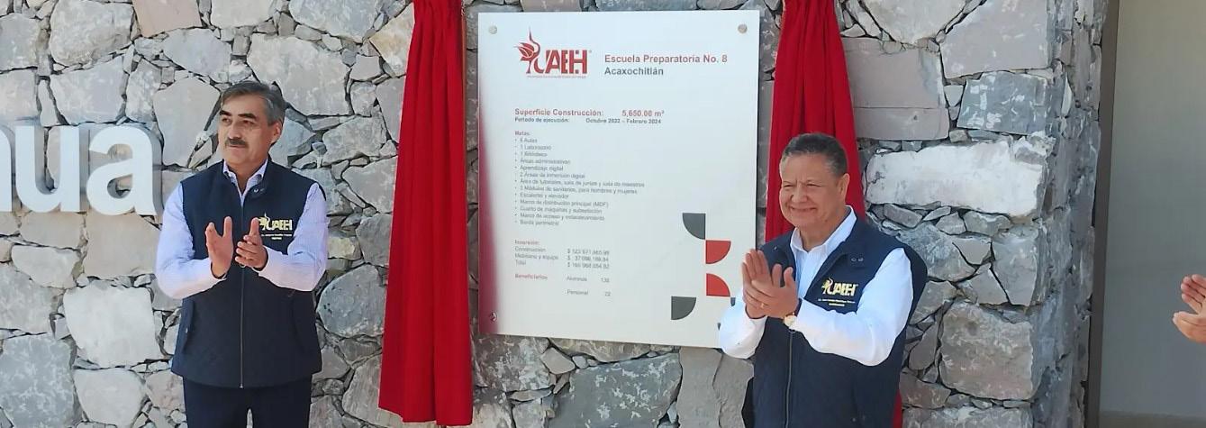 El gobernador de Hidalgo, Julio Menchaca, atestiguó la inauguración de diversas obras de infraestructura pertenecientes a la Universidad Autónoma del Estado de Hidalgo (UAEH), como la Escuela Preparatoria no. 8, clínicas odontológicas y la remodelación del Centro de