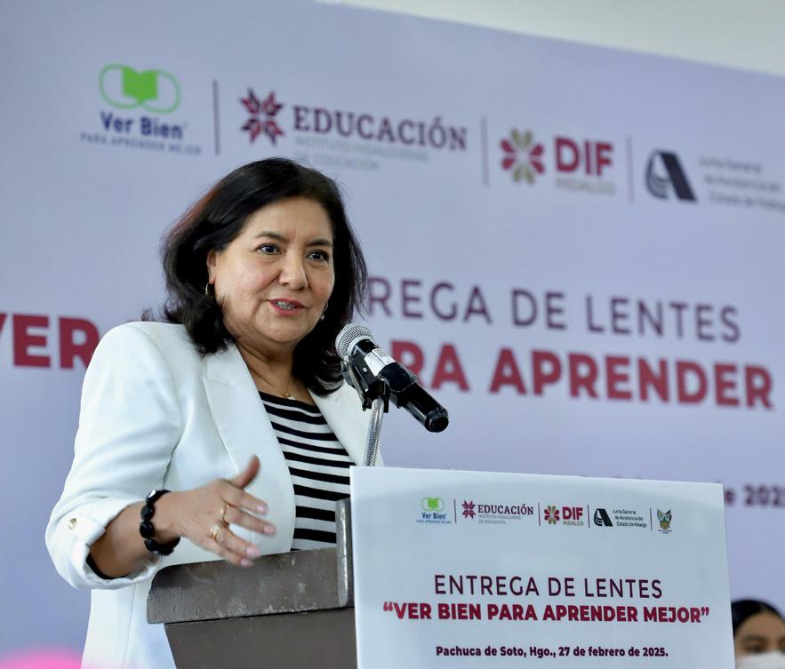 Durante la entrega, llevada a cabo en el Centro de Expresión Juvenil de Hidalgo (CEJuH), Edda Vite agradeció al equipo de la Secretaría de Educación Pública de Hidalgo (SEPH), representado por Virginia Hurtado, titular de la Unidad de Promoción Voluntaria, por la entrega de los lentes que, afirmó, abrirán un mundo de posibilidades para las y los pequeños al impulsar su aprovechamiento escolar.
