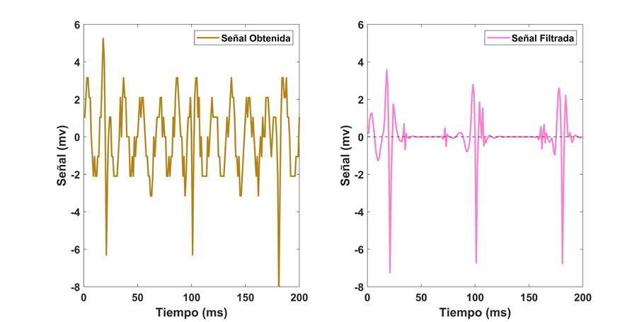 importante seleccionar una wavelet que se asemeje a la señal nerviosa a medir. Luego, mediante la Transformada Wavelet, se descompone la señal en pequeños componentes y se reconstruye utilizando solo aquellos con los valores más significativos. Esto permite eliminar el ruido sin perder la información esencial de la señal.
