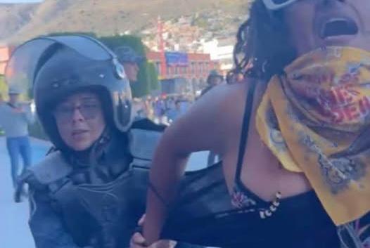 calles aledañas, así mismo elementos hombres comenzaron a detener personas, entre estas, intentaron subir a una patrulla a un fotoperiodista que hacía su trabajo en el lugar y documentaba el arresto de una de las manifestantes.