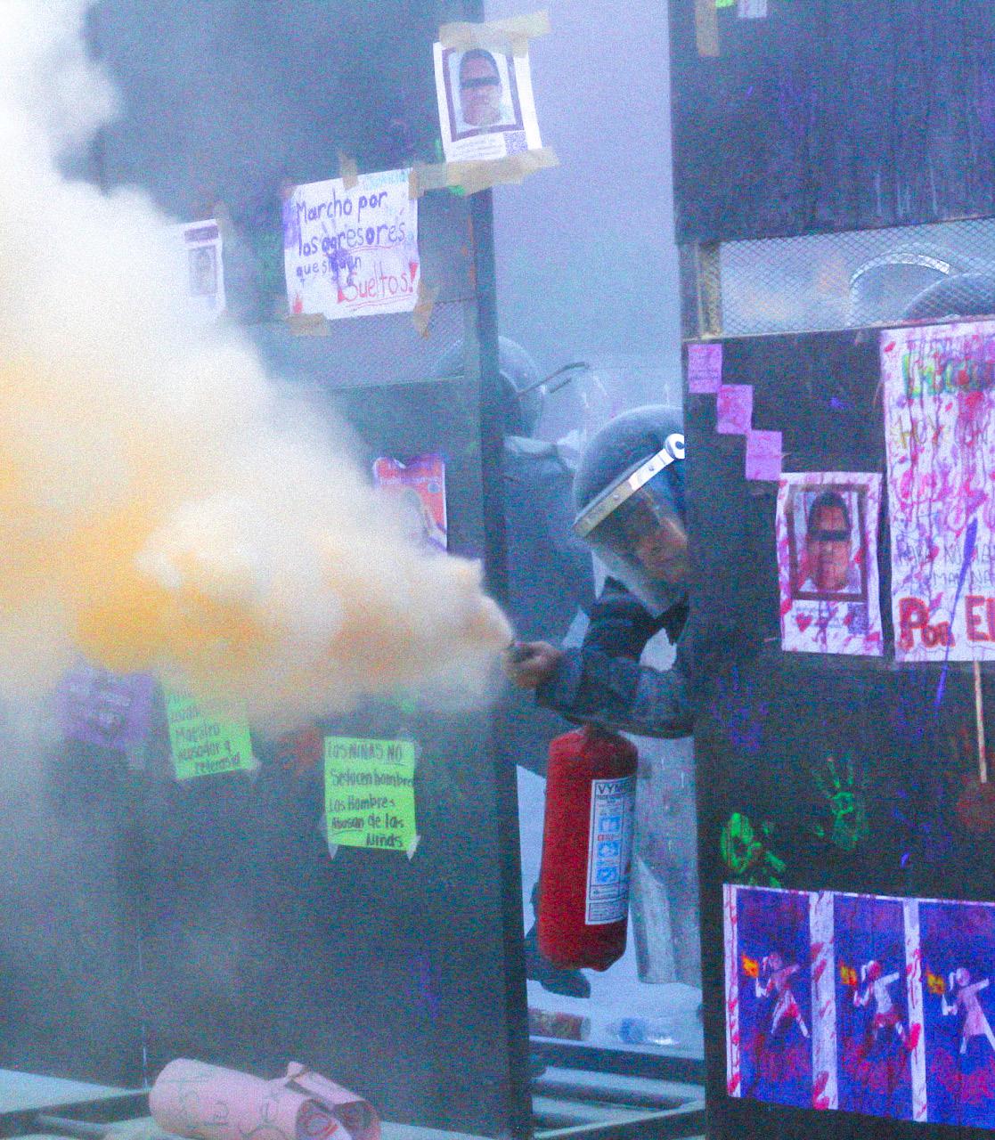 y ante la presión rociaron gases en contra de las manifestantes que buscaban traspasar la barricada de metal, en consecuencia se acercaron más manifestantes, la policía quedó rebasada y las vallas no sirvieron de mucho.