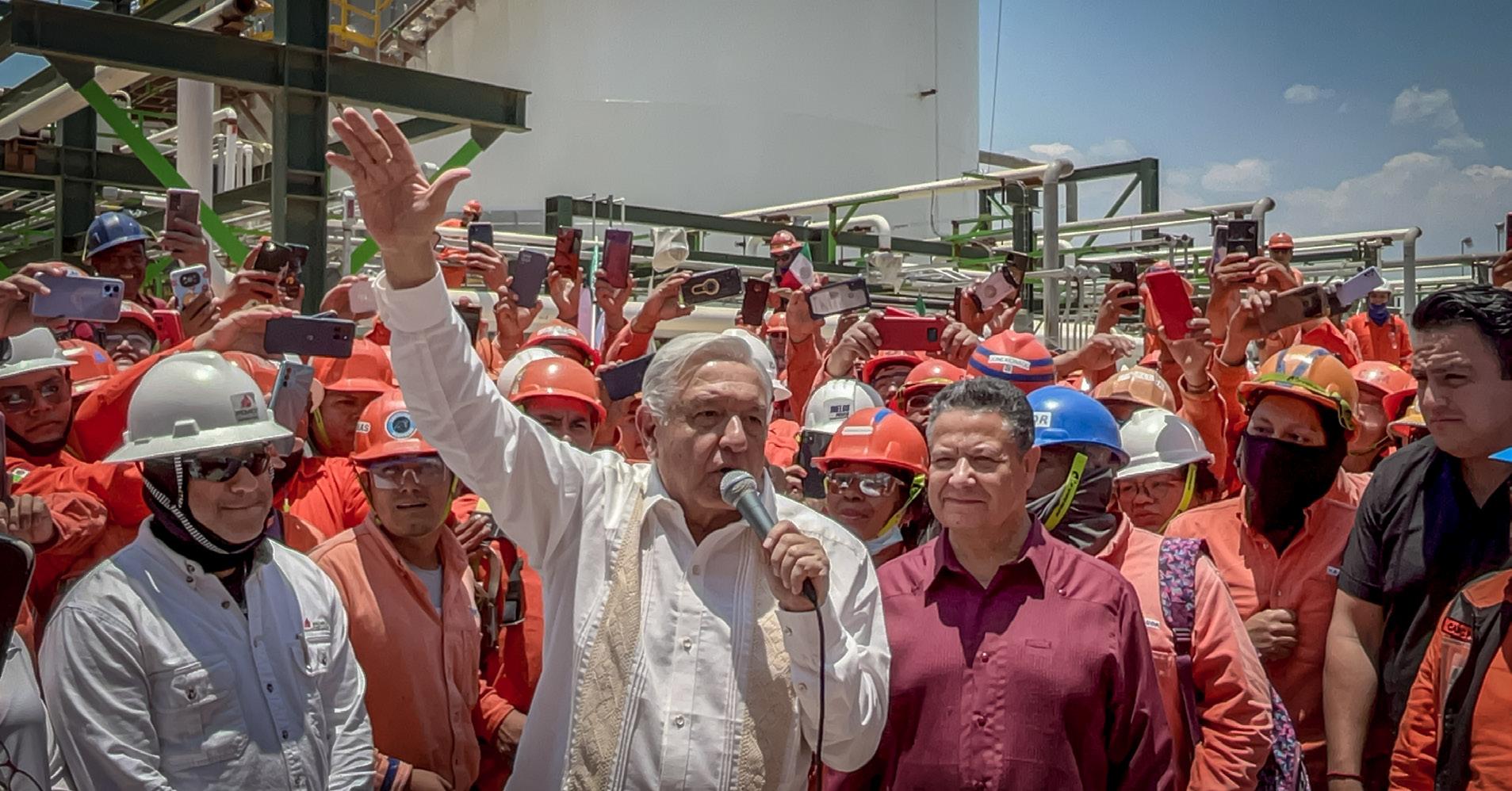 El Jefe del Ejecutivo estuvo acompañado por el gobernador de Hidalgo Julio Menchaca (Morena), la secretaria de Energía, Rocío Nahle y el director de Pemex, Octavio Romero Oropeza.