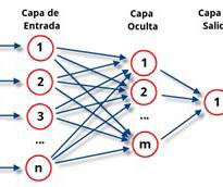 de éste, trabajando en una estructura de capas (Figura 2). Cada neurona posee una capa de entrada donde recibe la información que debe procesar, a cada entrada se le asigna un peso (W) el cual ayudará a establecer la importancia de la entrada dentro de la neurona. Los nuevos valores obtenidos de la suma de los pesos pasan a una capa oculta donde se les aplica un proceso matemático llamado función de activación que es la que hace al sistema capaz de aprender procesos muy complejos. De aquí la información llega a la capa de salida, donde se obtienen los resultados procesados por la neurona, o bien, estos pueden llegar como nueva información hacia la capa de entrada de otra neurona, e iniciar otro proceso de análisis y aprendizaje. Podemos tener neuronas complejas
