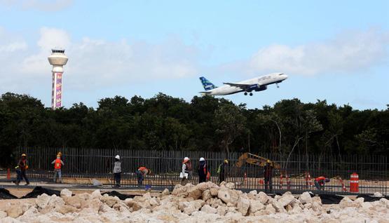Atrás del Aeropuerto Internacional de Cancún se construye una de las estaciones más grandes de todo el proyecto, las obras están en marcha las 24 horas del día y no se detienen ni en días festivos.
