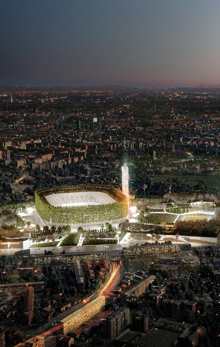 Dos elementos identificativos y emblemáticos del Estadio Forestal serán su pista de atletismo ubicada en el nivel superior, que ofrecerá a los usuarios un lugar para caminar y entrenar, y la ‘Torre de la Luz’, un hito luminoso para los equipos de fútbol milaneses.