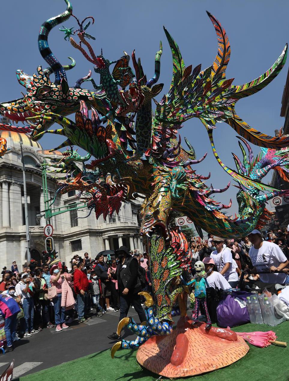 Tras el desfile, las piezas monumentales permane cerán las próximas dos se manas en una instalación al aire libre en la céntrica avenida Reforma, entre el Ángel y la glorieta de la Dia na, para participar en un concurso.