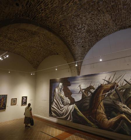 El mural es la joya de la corona de la exposición “Gabriel Flores: iconogra fía recurrente” que reúne además de 45 piezas de dibujo, acuarelas y pinturas de caballete propie dad de coleccionis tas y de la propia fa milia del pintor que son mostradas en el Exconvento del Car men, de la capital de Jalisco.