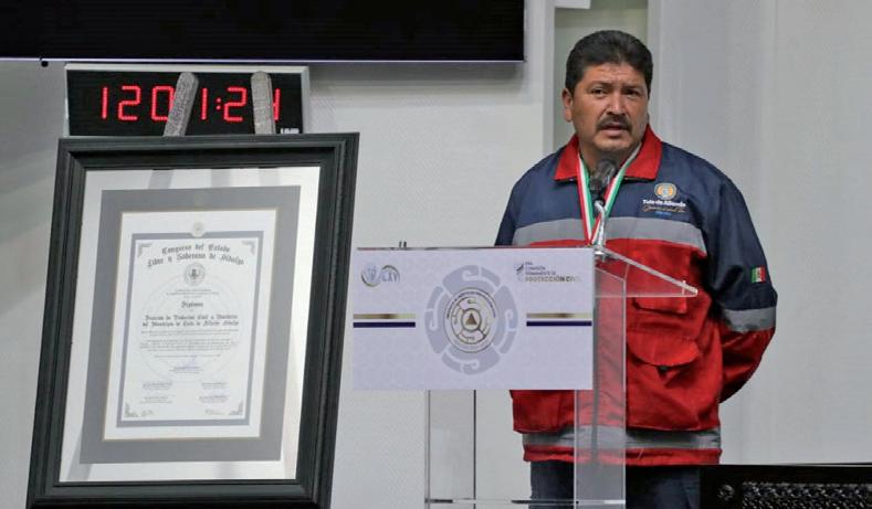 materia de protección civil. Posteriormente, se entre gó la presea al Mérito de Pro tección Civil 2022 a Iván Isa rael Nava Bautista, derivado de la trayectoria que acumula desde los 14 años de edad, ya que ha permanecido activo en diferentes cuerpos de emer gencias, bomberos y protec ción civil, entre sus logros y carrera destacan diversos cargos públicos y la creación de la primera Unidad Canina de Rescate (K9) de Bomberos en Tlahuelilpan.