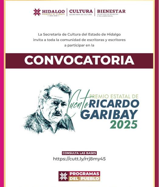 Como parte de las actividades de la XXV Feria del Libro Infantil y Juvenil Hidalgo, el gobierno del estado, a través de la Secretaría de Cultura, convoca a autoras y autores mayores de 18 años a participar en los Premios Estatales de Literatura 2025: Efrén Rebolledo, en la categoría de poesía, y Ricardo Garibay, en la categoría de cuento.
