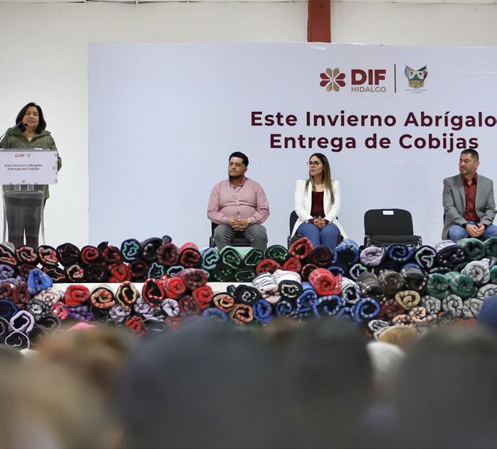 Por su parte, Ariana Sandoval, presidenta del SMDIF, agradeció el apoyo de Edda Vite y su equipo de trabajo, destacando que la entrega de cobijas no solo ofrece abrigo ante el frío, sino que refuerza el compromiso de trabajar en conjunto con el Sistema DIF Hidalgo. Sandoval expresó que la presencia de Edda Vite transmite un mensaje claro de empatía, solidaridad y colaboración.