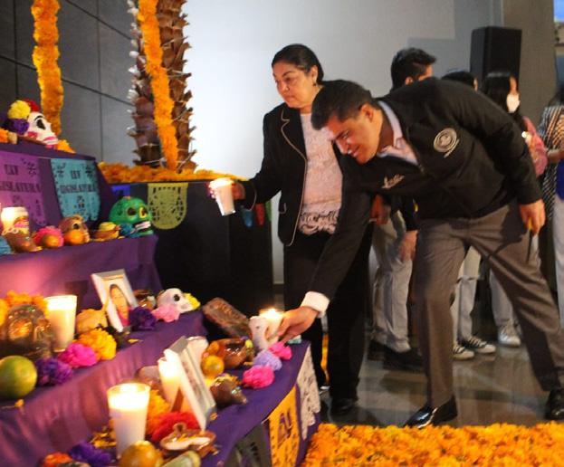 La Junta de Gobierno del Con greso de Hidalgo y la Primera Comisión Permanente de Cul tura inauguraron el Altar de Día de Muertos instalado en el lobby de la Torre Legislativa.