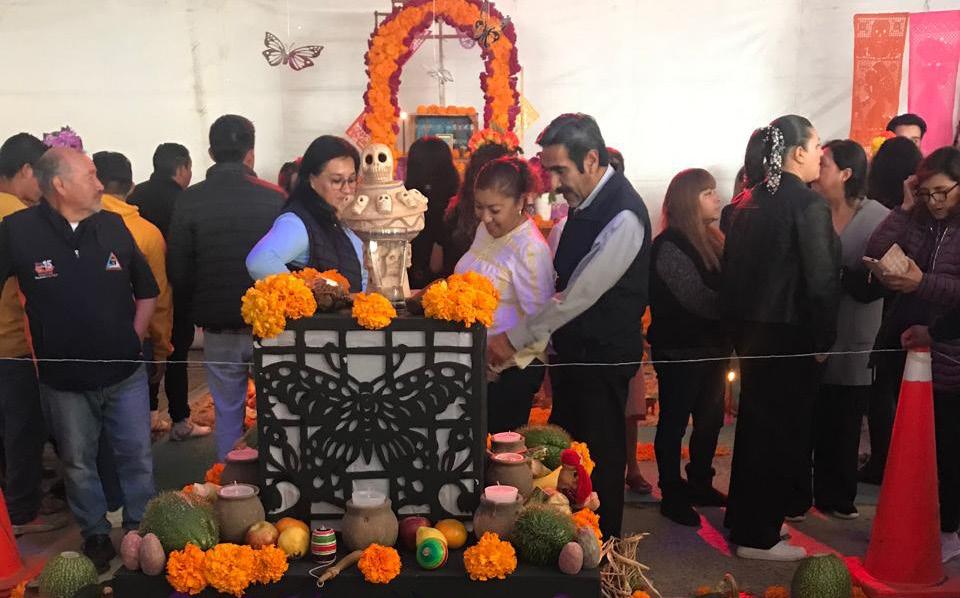 de Educación Pública de Hidalgo. En algunos altares se encontraban las fotografías de sus compañeros ya fallecidos y también la creatividad en los vestuarios de las catrinas. Esta celebración de Día de Muertos se realizó en la explanada de las oficinas centrales de la SEPH, ubicadas en la colonia Venta Prieta, en el municipio de Pachuca.