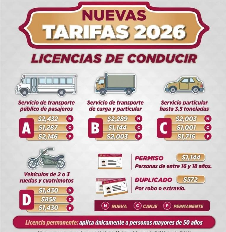 a Secretaría de Seguridad Pública (SSP) de Veracruz difundió los nuevos precios de las licencias de conducir que están vigentes desde este mes de febrero del 2026, luego de la actualización de la Unidad de Medida y Actualización (UMA), que es la referencia económica en pesos para calcular el pago de diversos trámites y obligaciones con el gobierno.