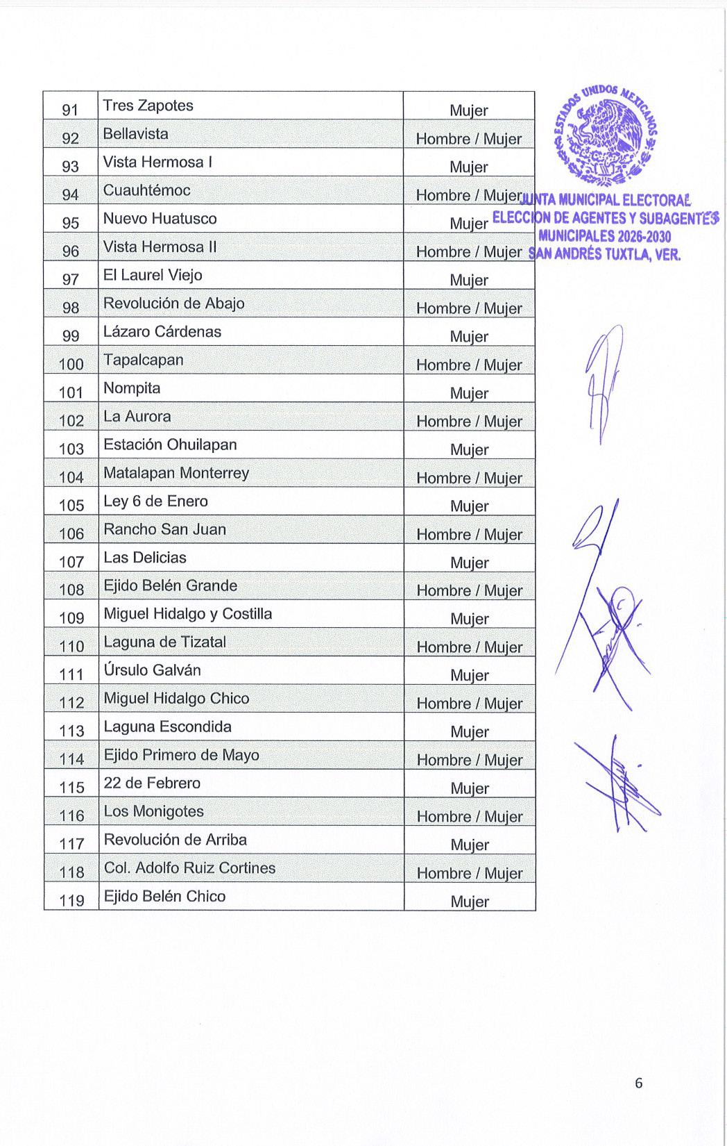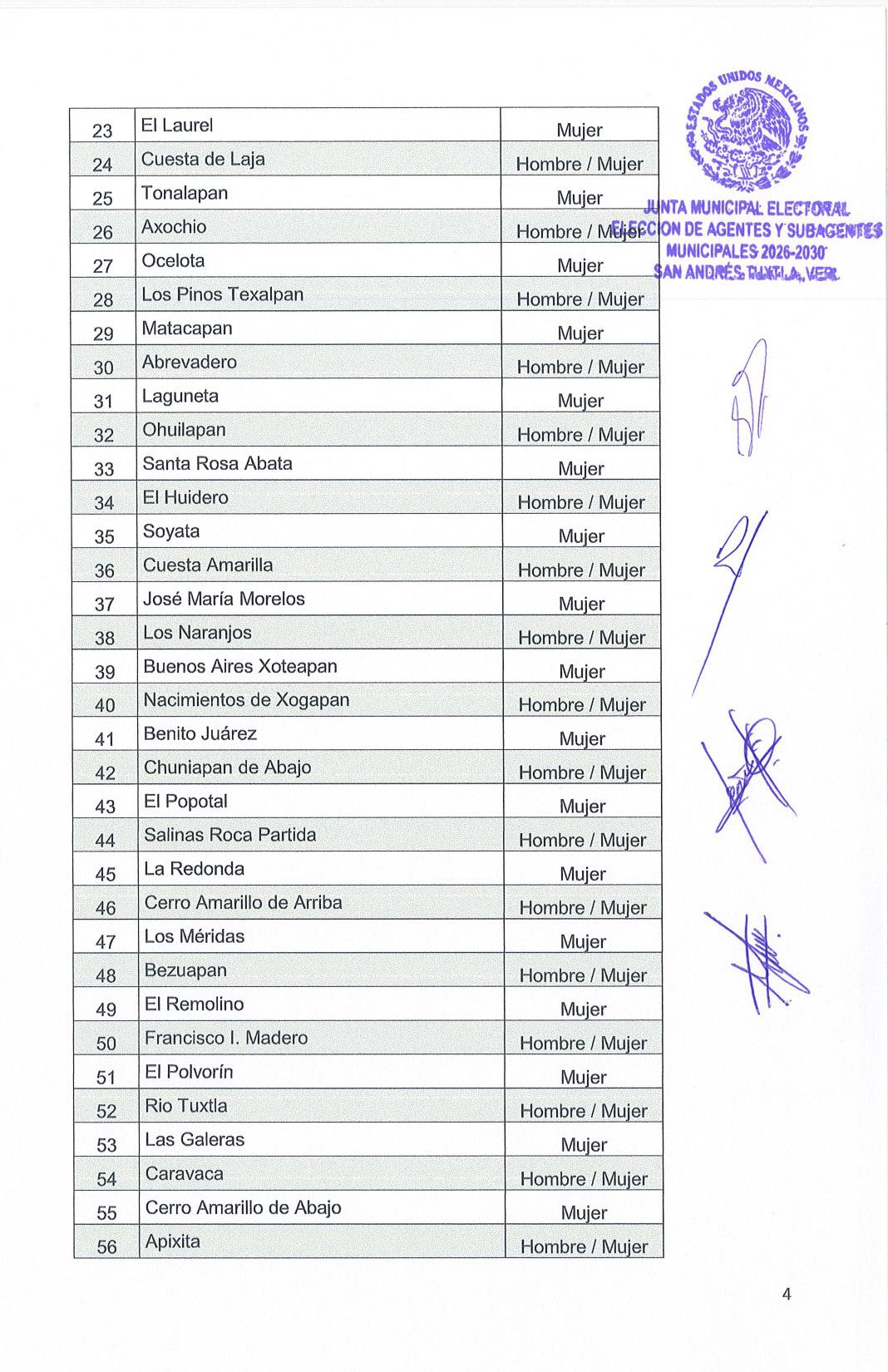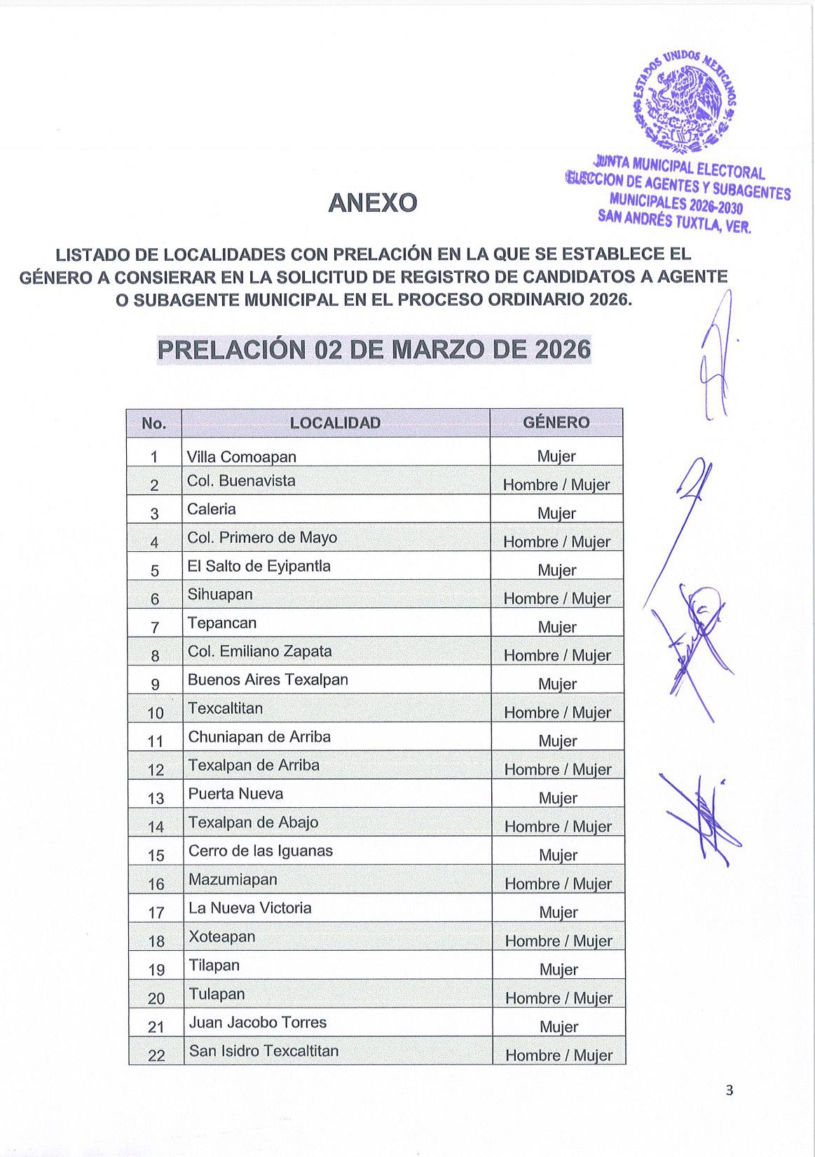 género que regirá el registro de aspirantes para participar en las elecciones municipales de Agentes y Subagentes Municipales para el periodo 2026-2030.