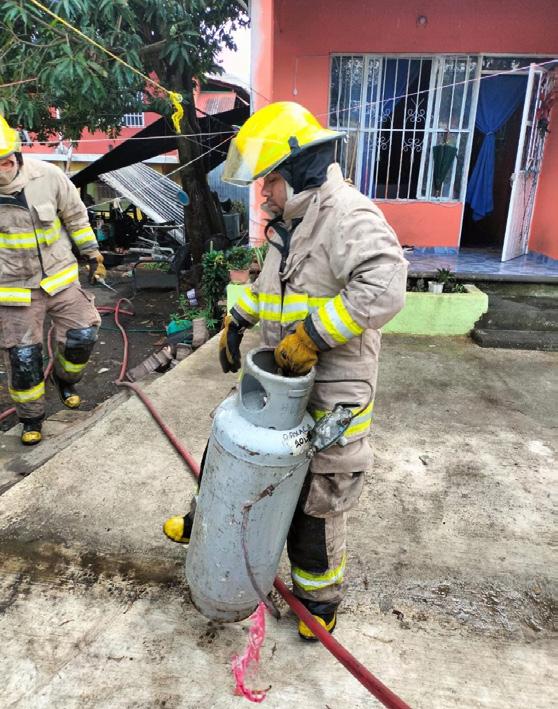 viviendas colindantes. Elementos del cuerpo de Bomberos arribaron minutos después, logrando retirar el tanque, controlar la fuga y enfriar el área afectada para prevenir una reactivación. El saldo fue únicamen -