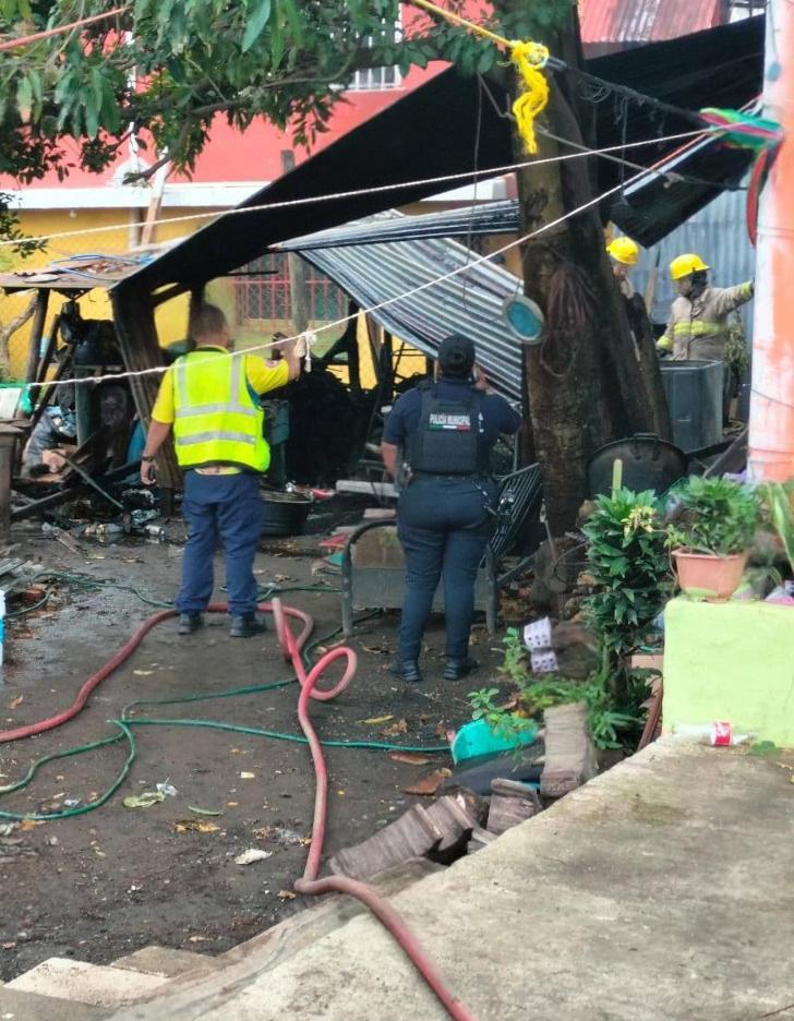 Fuego arrasa cocina exterior en la colonia Buenavista, en San Andrés Tuxtla