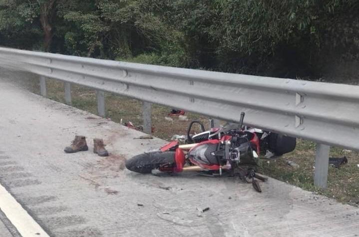 Se informó que, el motorista perdió el control de su motocicleta debido al exceso de velocidad, derrapó y se impacto violentamente contra las barras metálicas de contención, el golpe fue tan fuerte que perdió la pierna derecha.