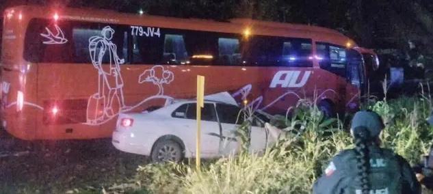 Dos jóvenes murieron la madrugada de este domingo tras un choque entre un autobús de pasajeros de la línea AU y un automóvil particular sobre la carretera federal Tinaja–Ciudad Alemán, a la altura de la comunidad de El Progreso, en el municipio de Tierra Blanca. El accidente ocurrió en el kilómetro 44+200, cuando un autobús de la línea Autobuses Unidos (AU), número económico 4304, que cubría la ruta Tuxtepec–Ciudad de México, se impactó contra un vehículo Volkswagen Bora. A consecuencia del choque, los ocupantes del automó -