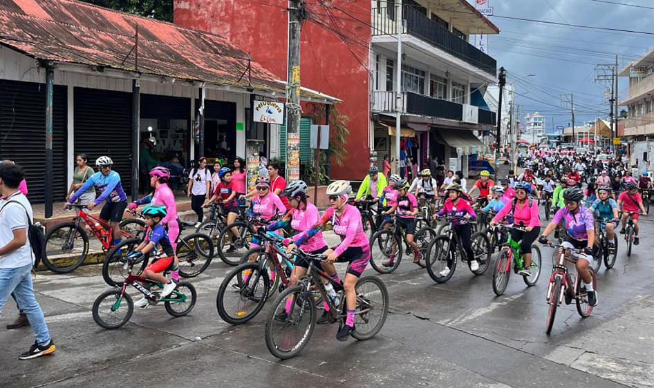 una marcha para crear concientización en la cual participaron personal del DIF Municipal, Instituto Municipal de la Mujer, Centro de Salud de Catemaco, y COBAEV 16 Catemaco, en coordinación con el grupo Fridas en Bici.