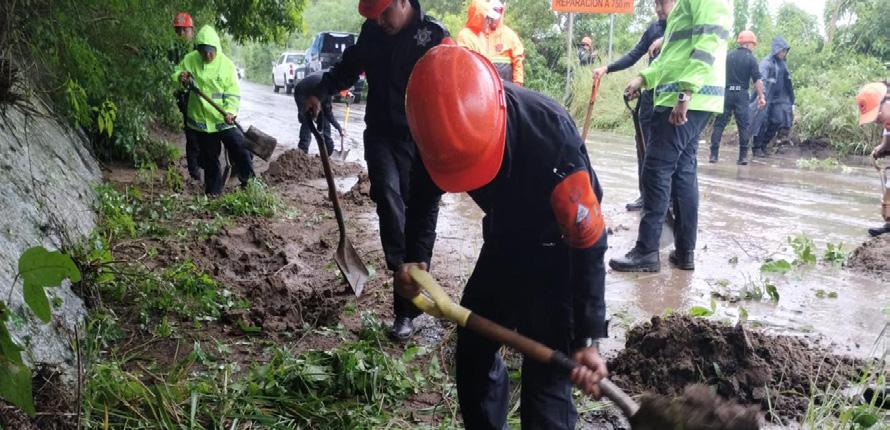 Detalló que elementos de la Policía Estatal en coordinación con Protección Civil y Autoridades municipales de Alvarado realizan labores de limpieza y desazolve, en las vías de comunicación.