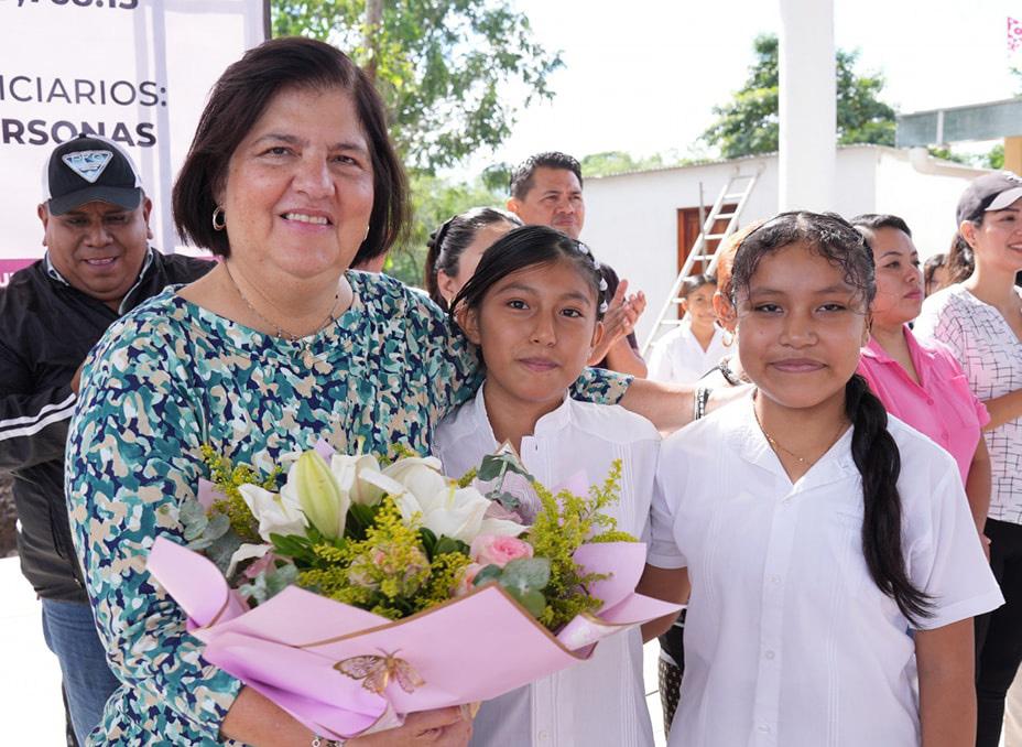Alcaldesa de San Andrés Tuxtla inaugura domo en Telesecundaria de Ocelota