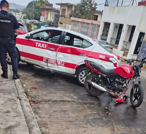 las calles Independencia y Melchor Ocampo, donde colisionaron una motocicleta y una unidad de transporte público con número 160 en su modalidad de taxi, procedente del municipio vecino de San Andrés Tuxtla.