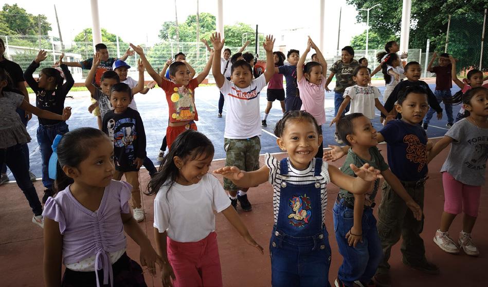 Niños y niñas participan en actividades de activación física como parte del Curso de Verano Cultural Infantil