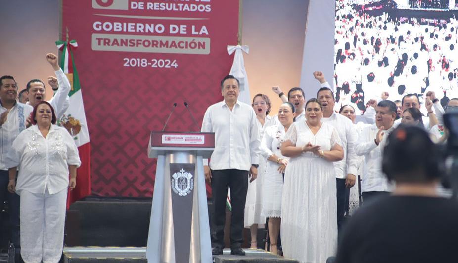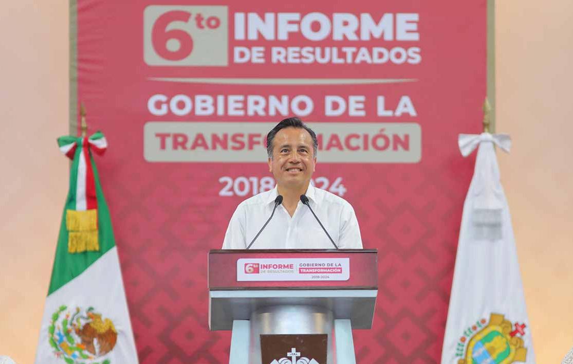 al lado de la presidenta electa Claudia Scheinbaum. “Felicito al estimado Gobernador de Veracruz @ CuitlahuacGJ, por su 6to Informe de Resultados, donde se ha construido el primer piso de la 4T que diseñó el presidente @lopezobrador_. Continuaremos consolidando la transformación al lado de nuestra presidenta electa @Claudiashein.”, subrayó en su cuenta de X. Este domingo, tras dar a conocer los logros y acciones que en total sumaron a la transformación estos primeros seis años de la primera administración de izquierda en el estado de Veracruz, Cuitláhuac García aseguró que con Rocío Nahle, este cambio va a continuar.