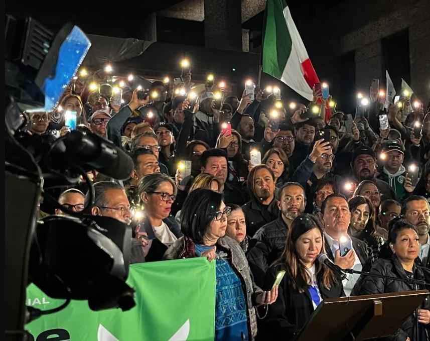 Los jueces, magistrados y ministros de los diversos tribunales federales colocaron velas en la fachada de las instalaciones de las oficinas federales, también cantaron el Himno Nacional como parte de las acciones en defensa de sus derechos laborales.